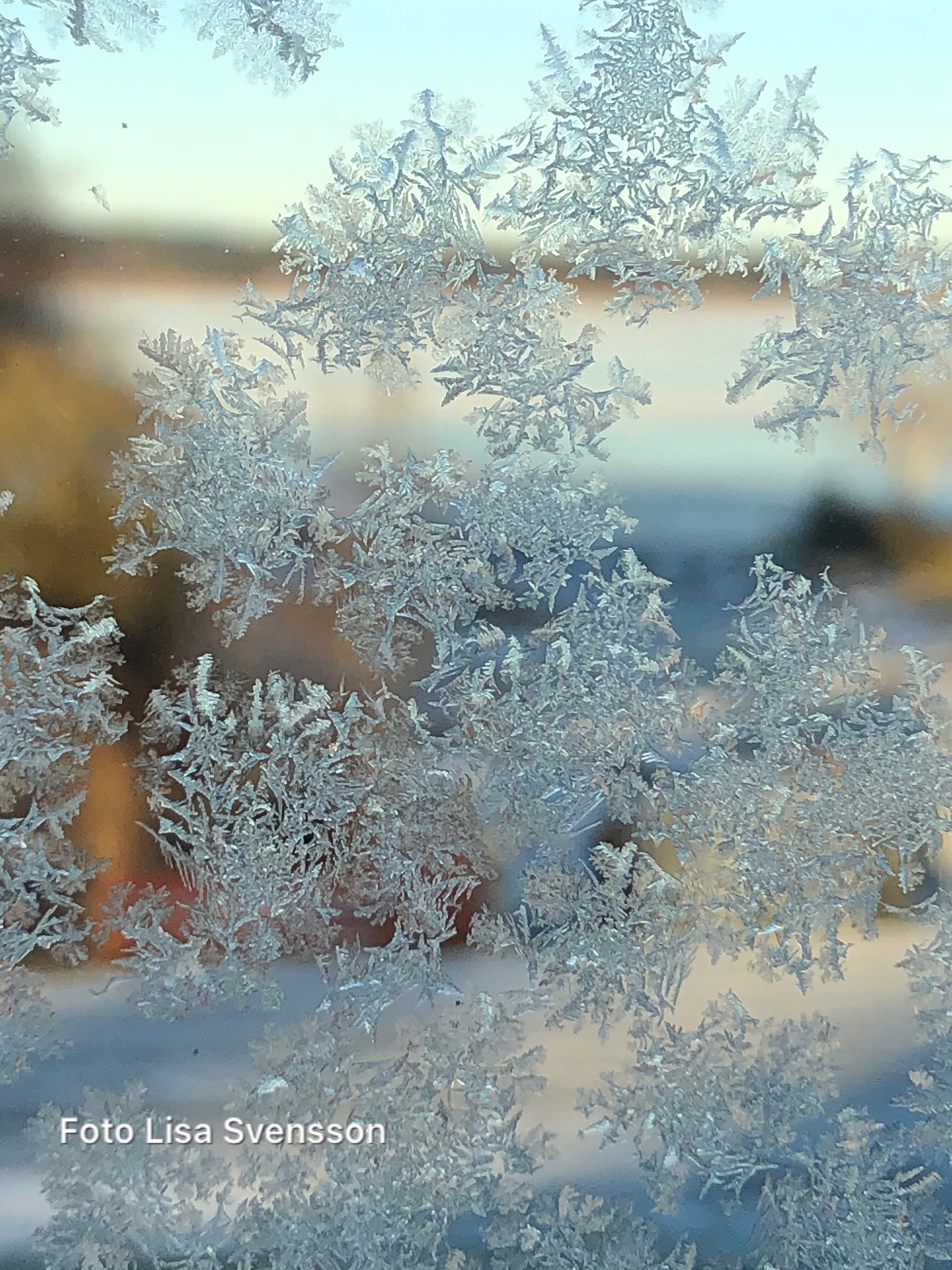 Iskristaller. Så fantastiskt vackra! Lyckan när det började bildas is på sjön! Inget som händer varje år precis, och extra kul det händer vår 1:a vinter i nya huset. Det blå ljuset som blir när det skymmer… jag älskar det! Färgen och mystiken i det.