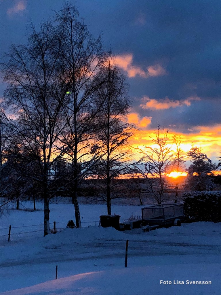 En tidig morgon i januari 2021, och snön är äntligen här! Att det är kallt syns på solen, och sticker man ut näsan ser man ut som Rudolf 😉